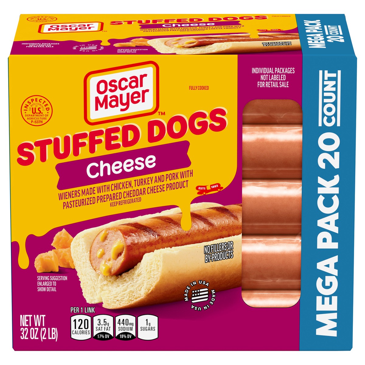 Oscar Mayer Uncured Velveeta Cheese Dogs are made with the tasty wieners you love plus the cheesy goodness of Velveeta is sure to please the whole family. Made with turkey\, chicken and pork with no f…