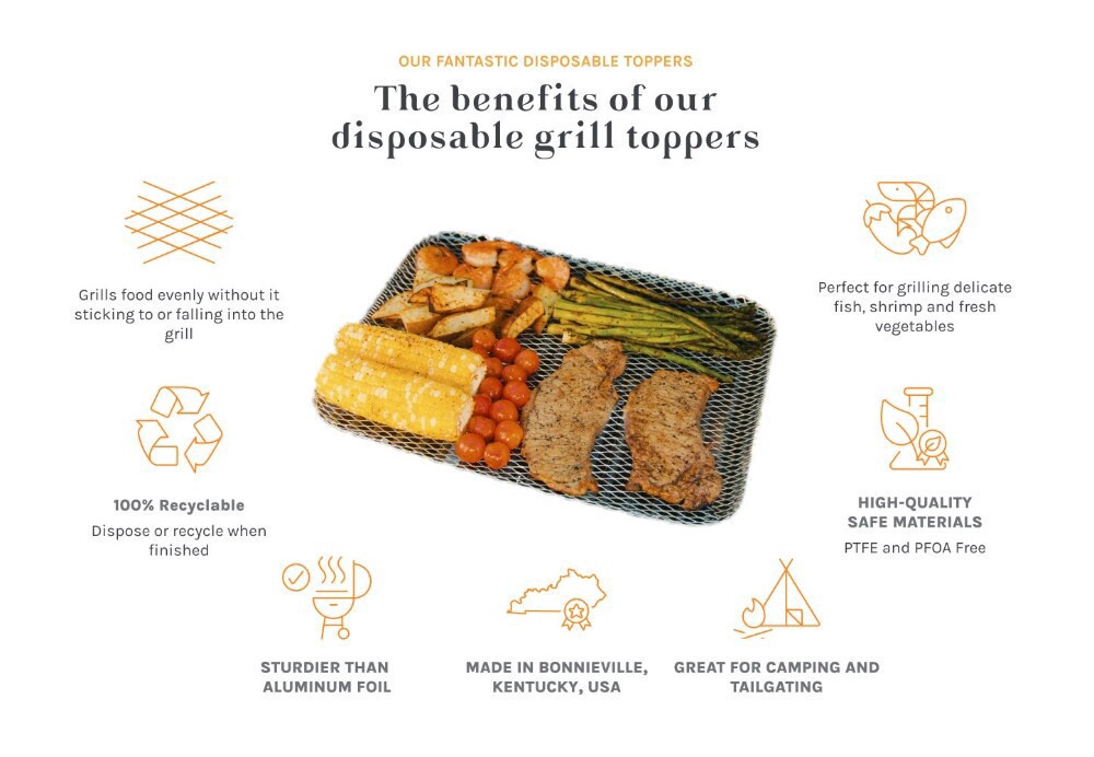 16 x 12 disposable. For grilling all things! Expanded aluminum topper grills food evenly and is sturdier than foil. Great for grilling meats, fish, seafood and vegetables. Helps keep food from falling…