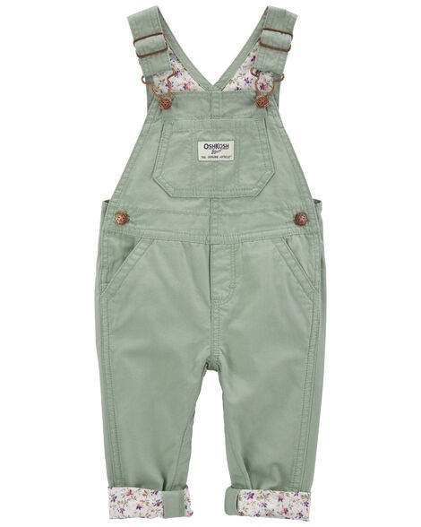 Oshkosh Baby Floral Lined Lightweight Canvas Overalls Green 18M
