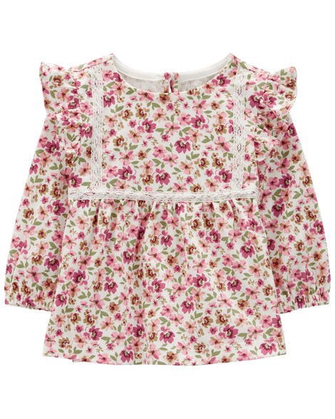 Oshkosh Baby Floral Print Ruffle Top Pink 9M
