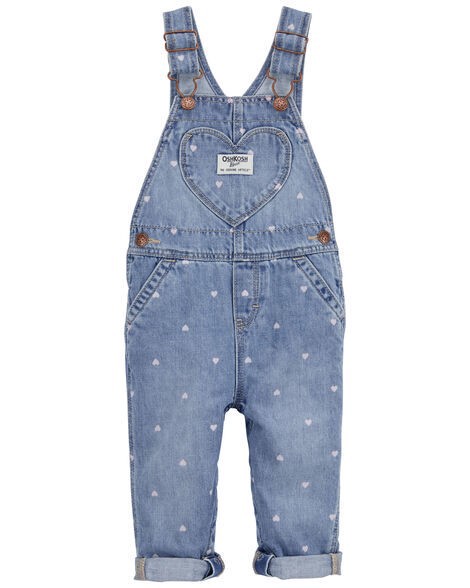 Oshkosh Baby Heart Print Denim Overalls Blue 9M