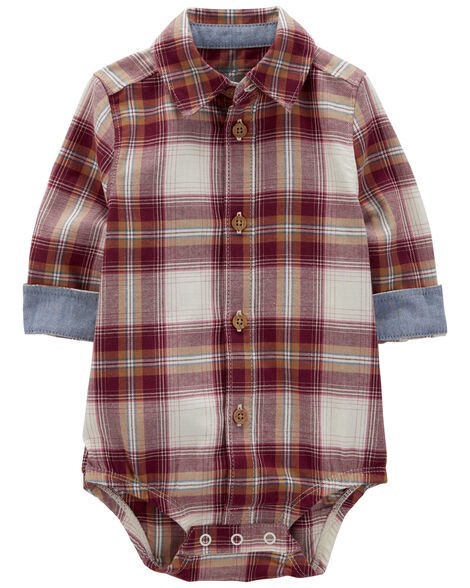 Oshkosh Baby Plaid Button-Front Bodysuit Maroon 12M