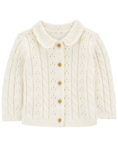 Oshkosh Baby Pointelle Button-Front Sweater Knit Cardigan Cream 3M