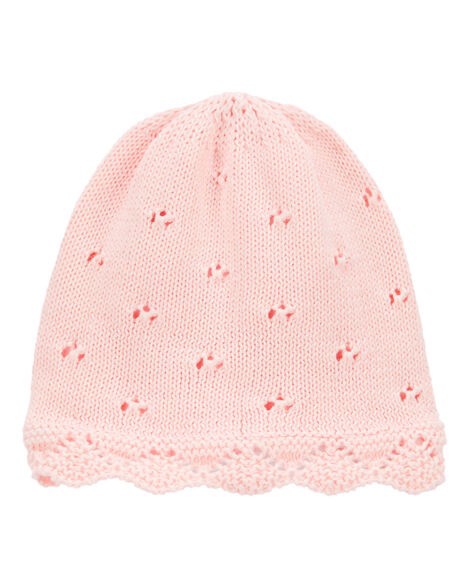 Oshkosh Baby Scalloped Edge Pointelle Beanie Pink 0-9M