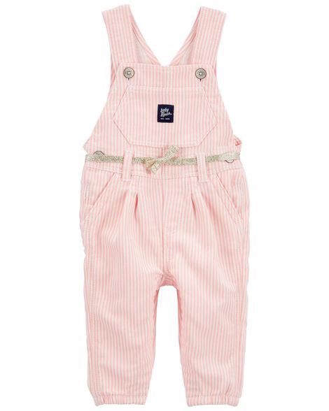 Oshkosh Baby Stretchy Hickory Stripe Overalls Pink 6M