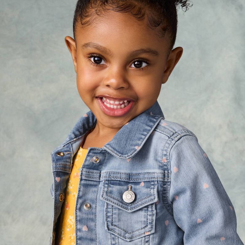 slide 4 of 4, OshKosh B'gosh Toddler Girls' Heart Denim Jacket - Blue 3T: Standard Fit, Button Down, 2 Pockets, 1 ct