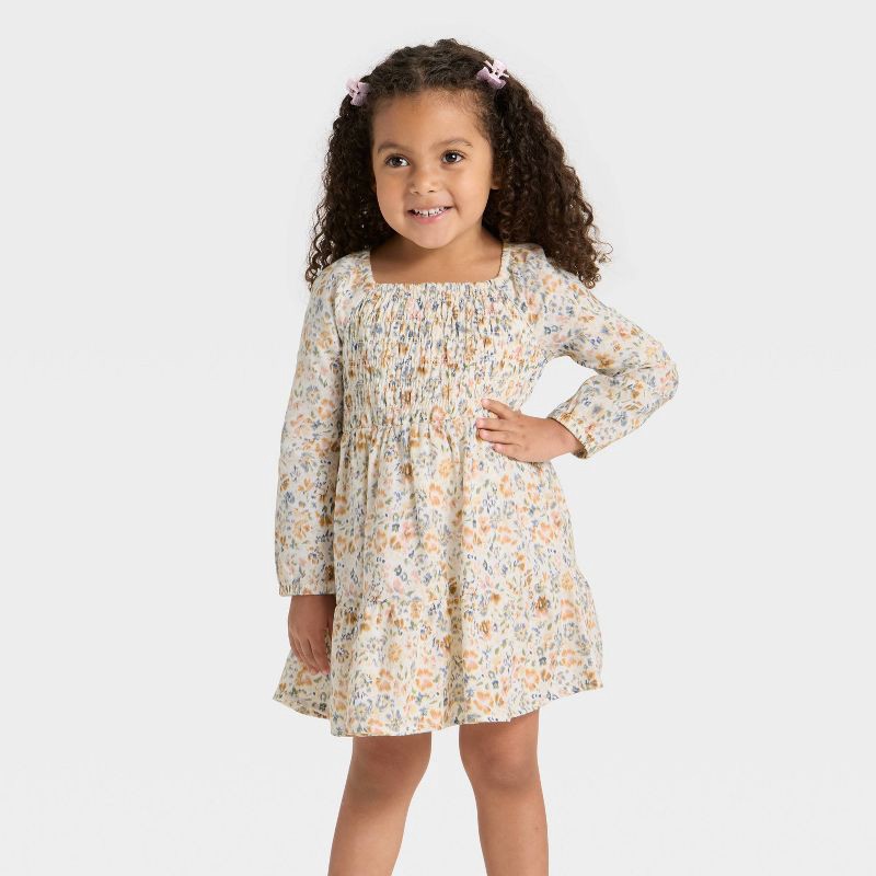 Here's a long sleeve dress for your toddler girl from OshKosh B'gosh that's a perfect go-to for picturesque fall days! This floral print dress has the sweetest details with 3/4 sleeves and a tiered sk…