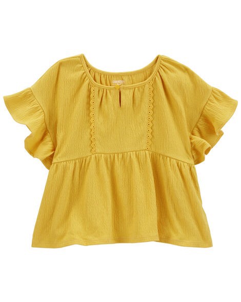 slide 1 of 2, Oshkosh Kid Crinkle Jersey Flutter Crochet Top Yellow 8, 1 ct