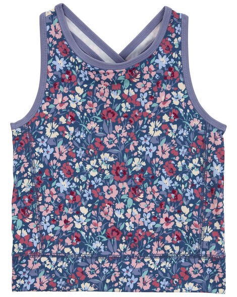 Oshkosh Kid Floral Print Active Criss-Cross Tank Blue 6-6X