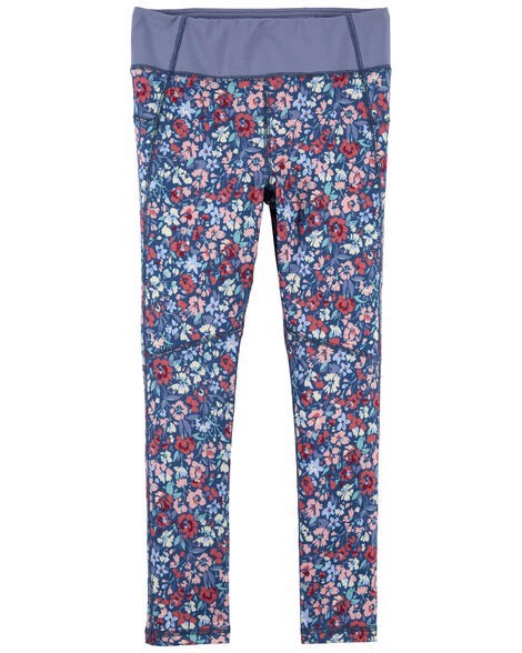 Oshkosh Kid Floral Print Active Leggings in BeCool Fabric Purple 7