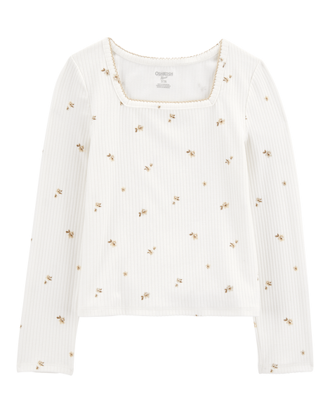 Oshkosh Kid Long-Sleeve Floral Cotton Rib Tee Ivory 4