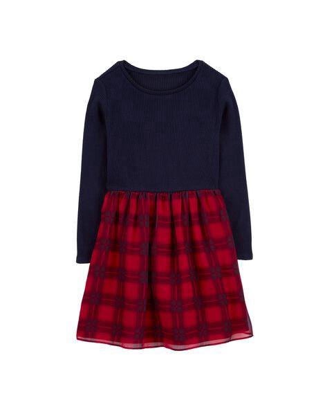 Oshkosh Kid Long-Sleeve Plaid Dress Red, Blue 8