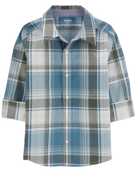 slide 1 of 3, Oshkosh Kid Plaid Button-Front Shirt Blue 8, 1 ct