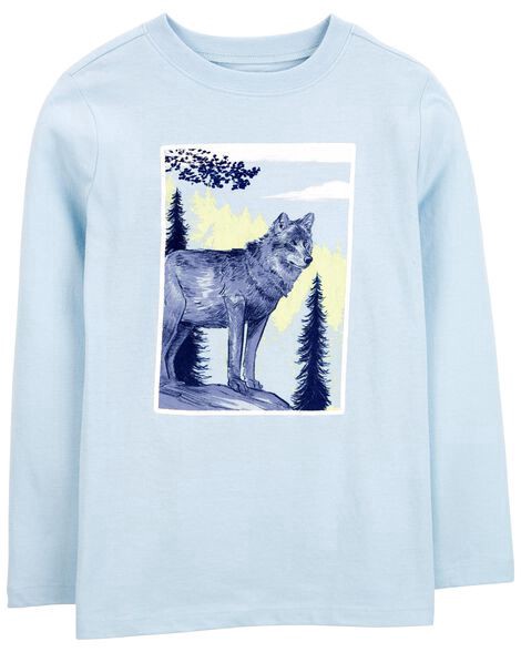 Oshkosh Kid Wolf-Print Long-Sleeve Graphic Tee - Blue Blue XL