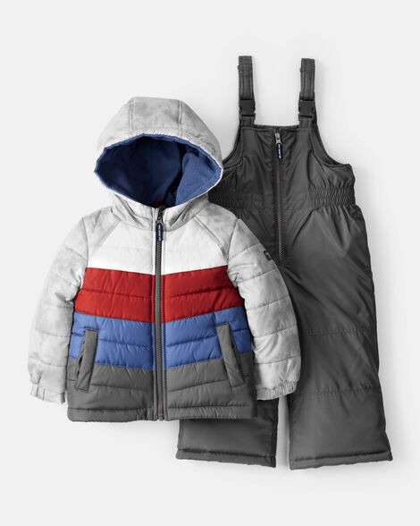 slide 1 of 5, Oshkosh Toddler Boy 2-Piece Color Block Hooded Snowsuit Jacket & Bib Set Multi 4T, 2 pc