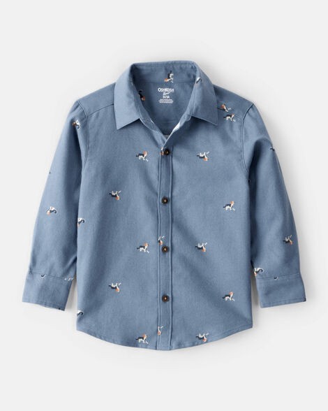 Oshkosh Toddler Boy Dog Print Button-Down Shirt - Blue Blue 2T