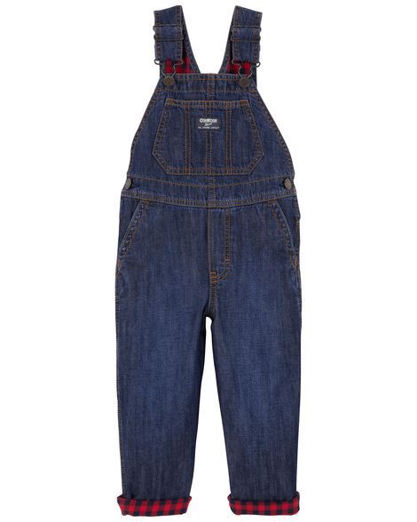 Oshkosh Toddler Buffalo Plaid-Lined Overalls Dark Wash 4T