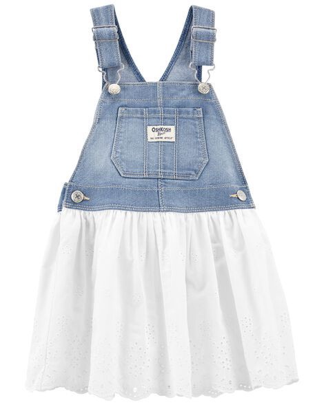 slide 1 of 3, Oshkosh Toddler Denim Eyelet Jumper Dress Blue/White 5T, 1 ct