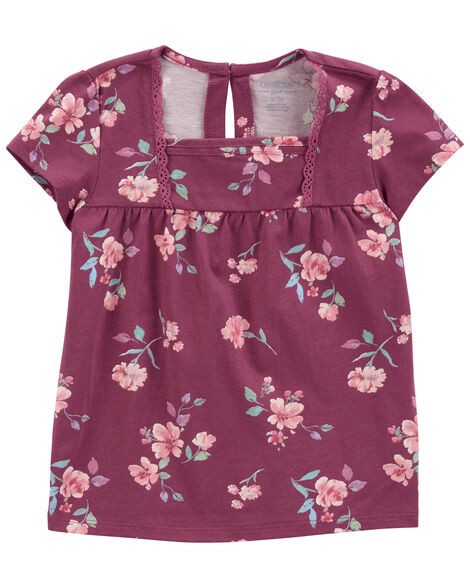 Oshkosh Toddler Floral Print Crochet Top Maroon 5T