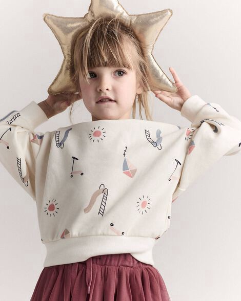slide 3 of 7, Otteravenue Toddler Dolman-Sleeve Sweatshirt in Park Day Print - Cream Cream 5T, 1 ct