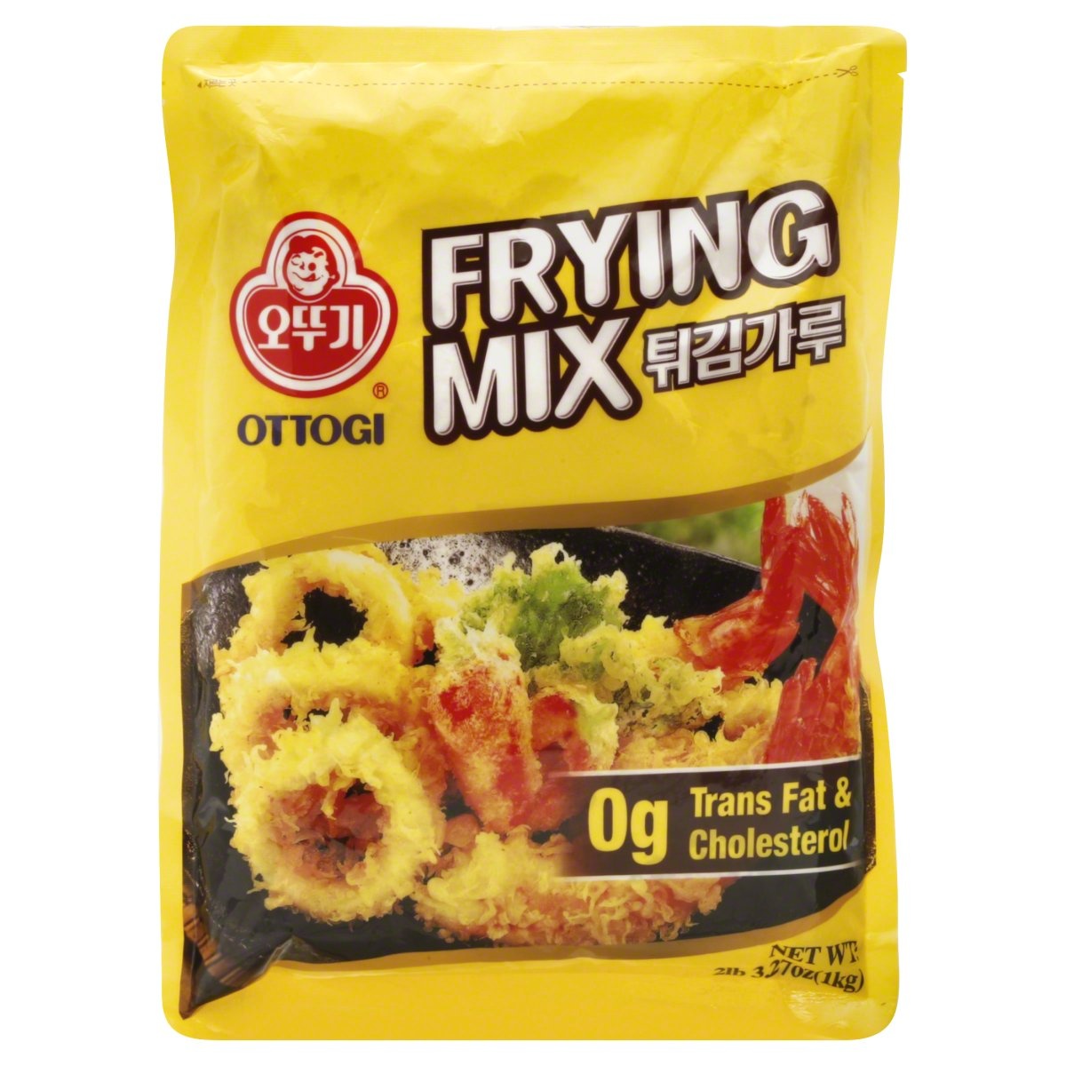 0 g trans fat & cholesterol. Ottogi Frying Mix is a mixture of flour seasoned with a variety of spices such as roasted rice powder, garlic, pepper, etc., which tastes great with vegetables, fish, scal…
