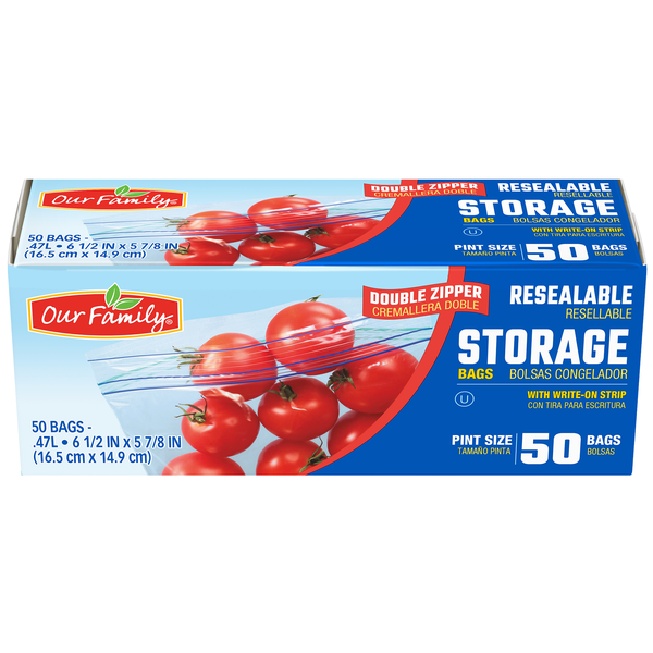 slide 1 of 1, Our Family Bag Storage Pint, 50 ct