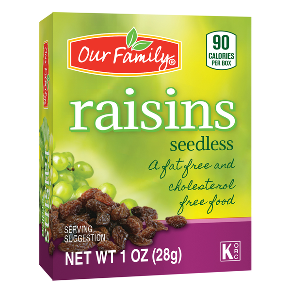 slide 1 of 1, Our Family Dried Fruit Sdlss Raisins, 9 oz