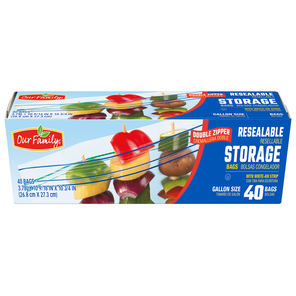 slide 1 of 1, Our Family Gallon Resealable Storage Bags, 40 ct