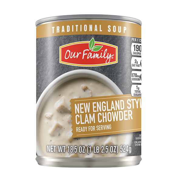 slide 1 of 1, Our Family New England Style Clam Chowder Traditional Soup, 18.5 oz