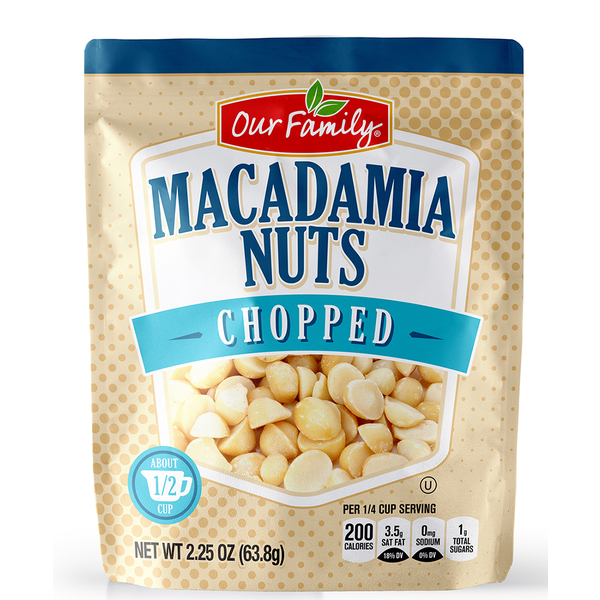 slide 1 of 1, Our Family Nuts Baking Macadamias Chopped, 2.25 oz