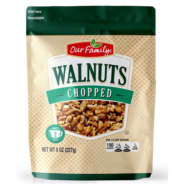 slide 1 of 1, Our Family Nuts Baking Walnuts Chopped, 8 oz