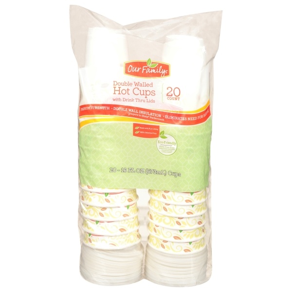slide 1 of 1, Our Family Pla Lined Hot Cup With Lid, 20 ct