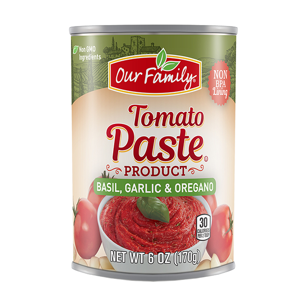 slide 1 of 1, Our Family Tomato Paste With Basil, Garlic & Oregano, 6 oz