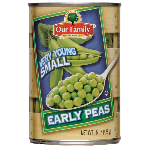 slide 1 of 1, Our Family Very Young Small Early Peas - 15 oz, 15 oz