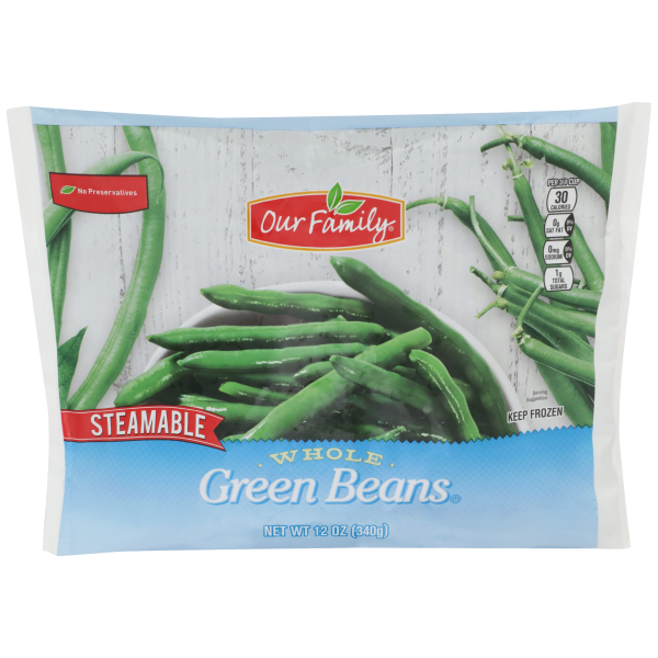 slide 1 of 1, Our Family Whole Green Beans Steamable Bag, 12 oz