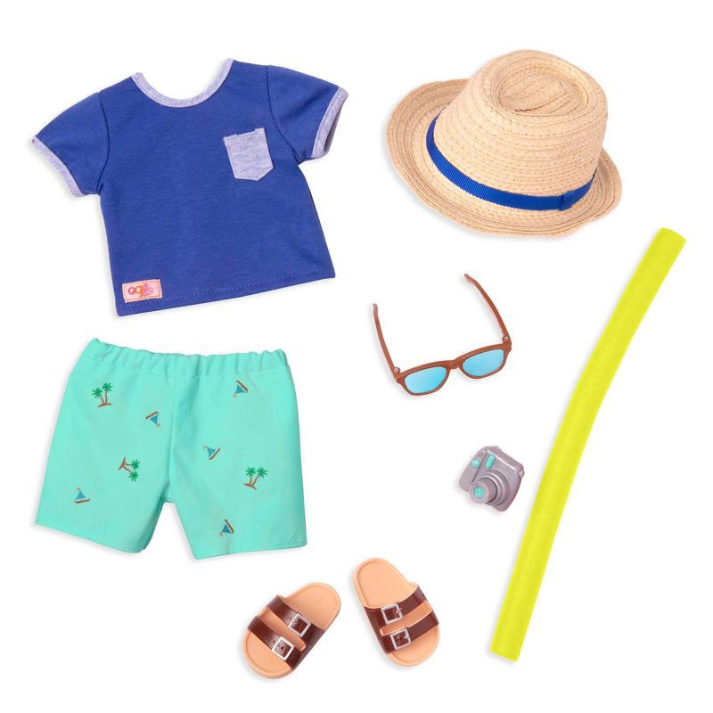 Enjoy fun in the sun with your 18-inch boy dolls in the Our Generation By the Beach outfit! Trips to the sea are extra exciting with the right outfit. Dress up your beach bud with the true-blue T-shir…