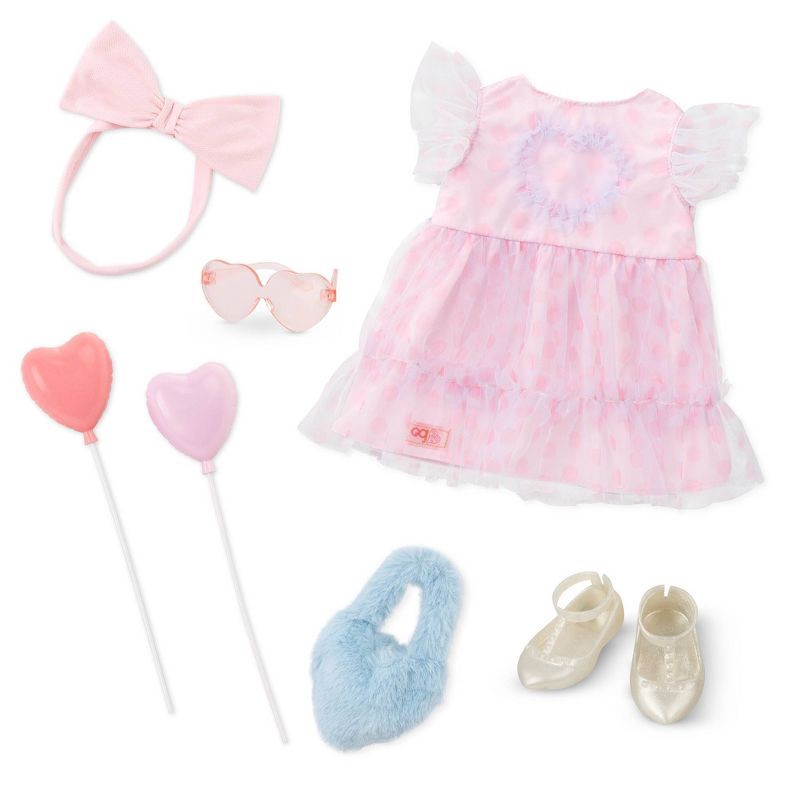 - 18-inch Doll Party Outfit: Celebrate fun times in sweet style with the Our Generation All Heart outfit for 18-inch dolls!