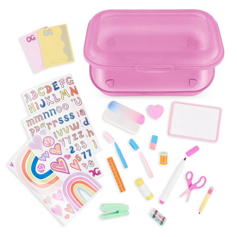 - 27-pc Doll School Supplies Set: Unpack big dreams and school day fun with the Our Generation Love to Learn accessory set for 18-inch dolls!