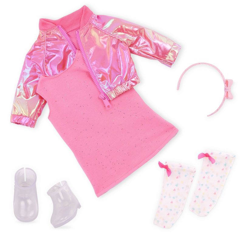 - 18-inch Doll Pink Jacket & Dress Outfit: Make dress-up shine for fashion fans with the Our Generation Splash of Pink outfit for 18-inch dolls!