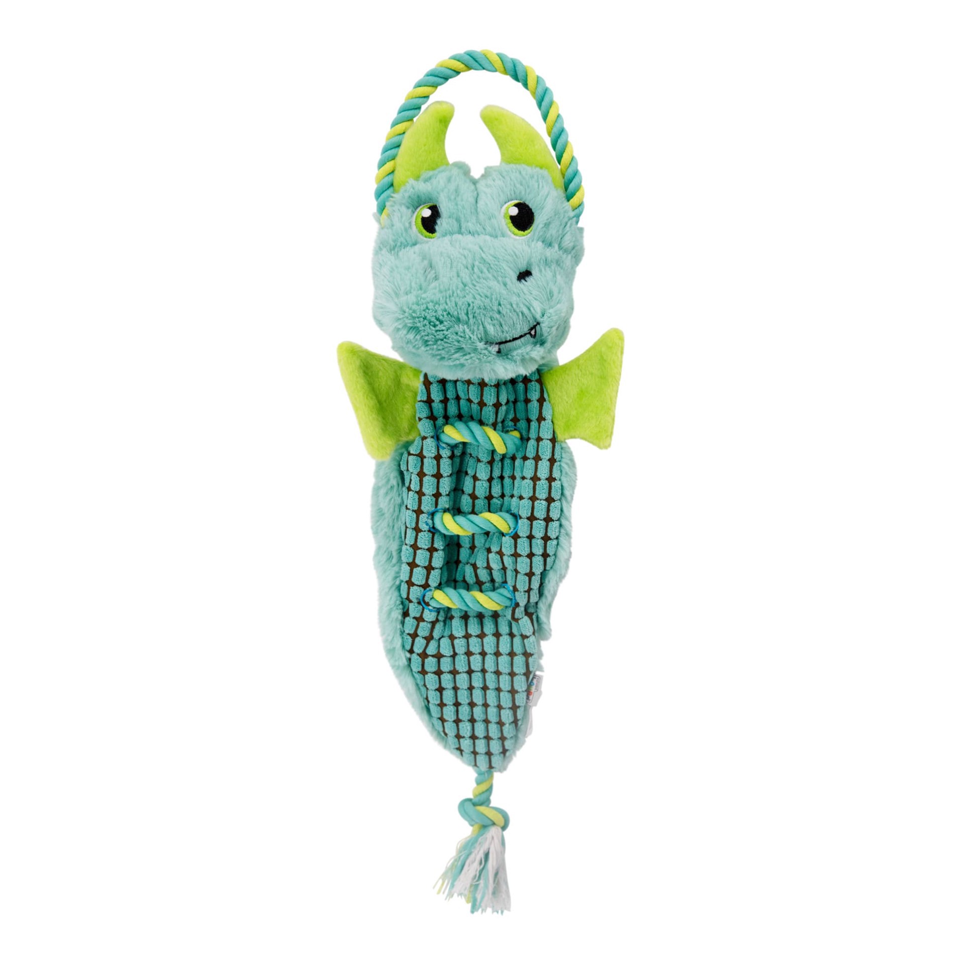 The Outward Hound Ropiez Dragon is guaranteed to keep your dog entertained. Featuring squeak and crinkle sounds dogs love, rope handle and ultra durable material, these plush toys stand up to tough tu…