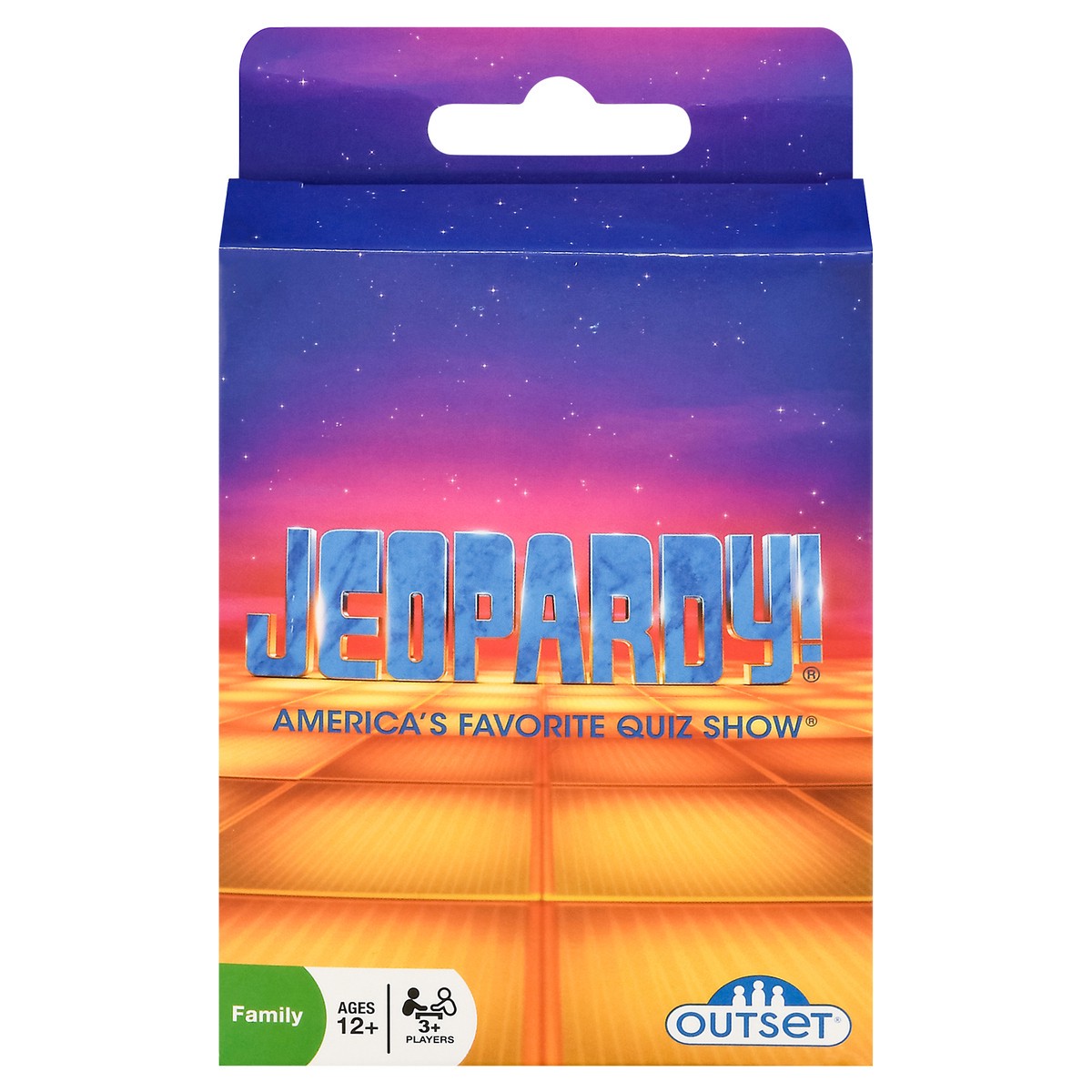 3+ Players. America's favorite quiz show. Knowledge of English required. The Jeopardy! Card game allows you to play the classic TV show anywhere you go! Just like the show, the card game features Jeop…