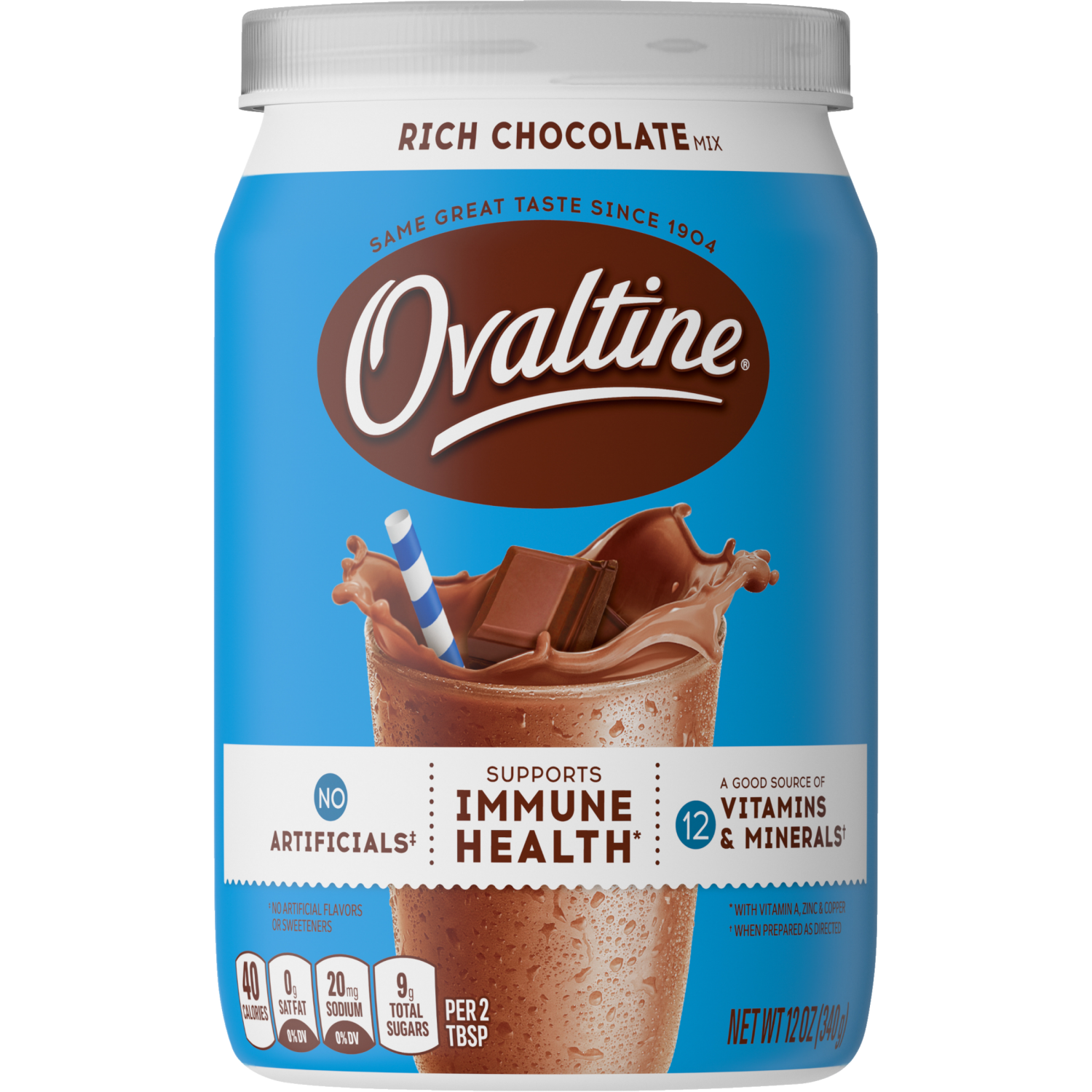 Make your milk work harder with Ovaltine Rich Chocolate Flavored Powdered Drink Mix. A classic addition to milk and plant based dairy, this powder drink mix gives milk a nostalgic chocolate milk taste…