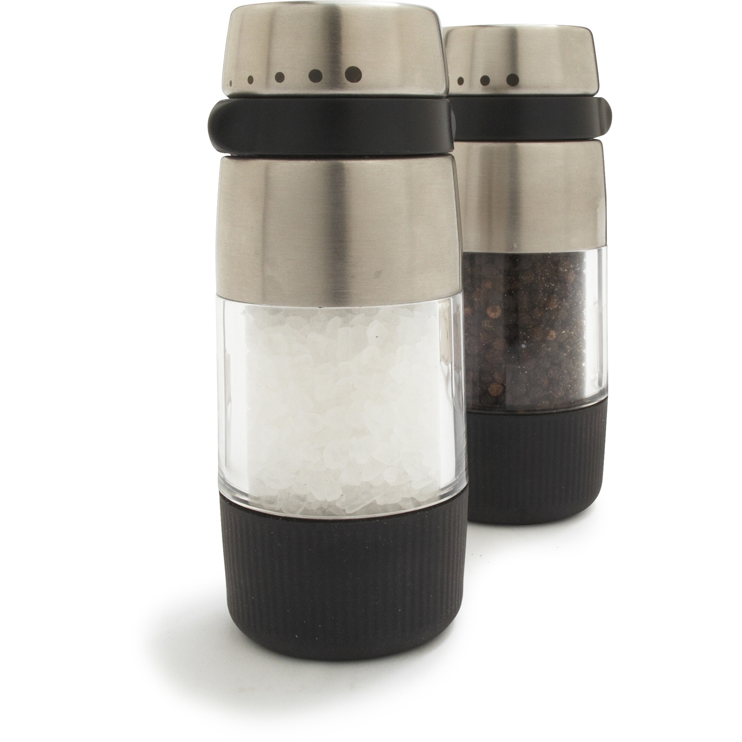 Mills are perfect for cooking in the kitchen, yet elegant enough to bring to the table. Clear acrylic body is highlighted with stainless-steel accents. Grind setting adjusts from fine to coarse and re…