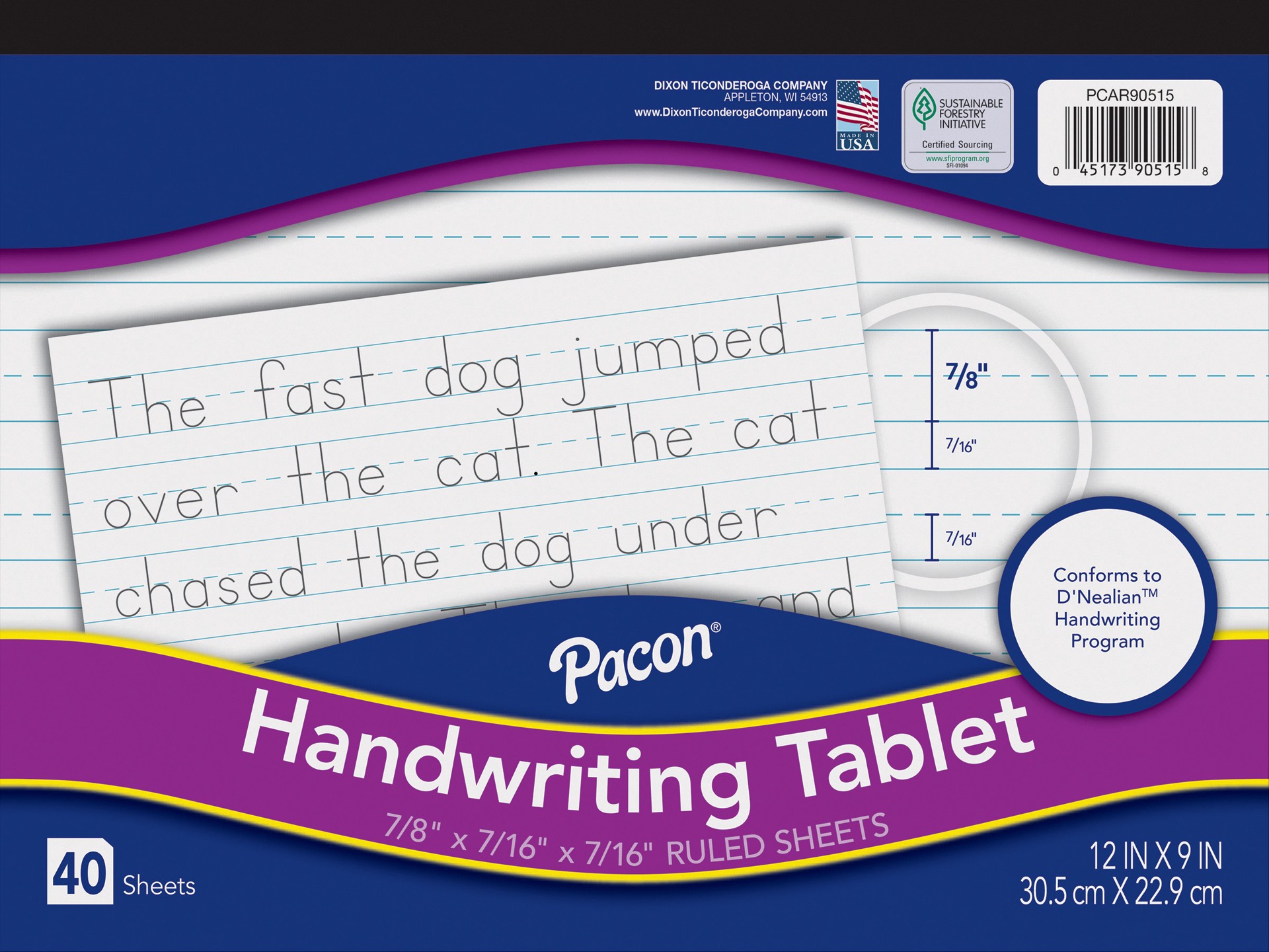 Pacon Handwriting Tablet, White, 7/8 in x 7/16 in x 7/16 in ruled 12" x 9", Ruled Long, 40 Sheets