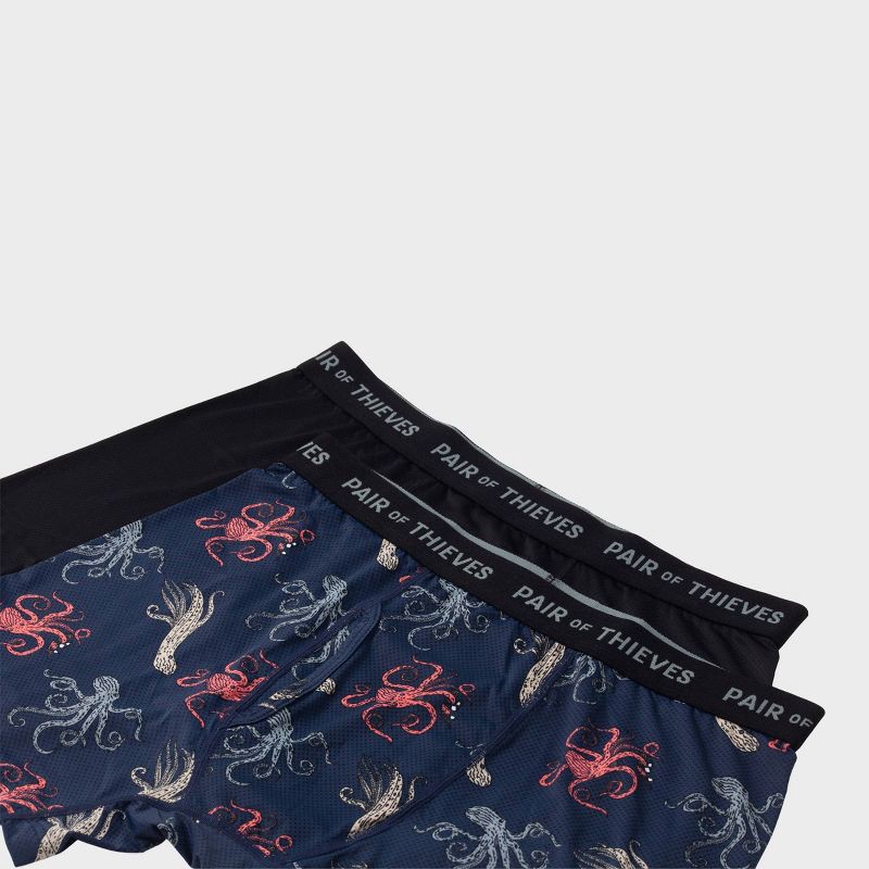 slide 3 of 5, Pair of Thieves Men's Super Fit Print Boxer Briefs 2pk - Black S: Tagless, Mesh Fabric, Full Waistband Elastic, Aquatic Animal Pattern, 2 ct