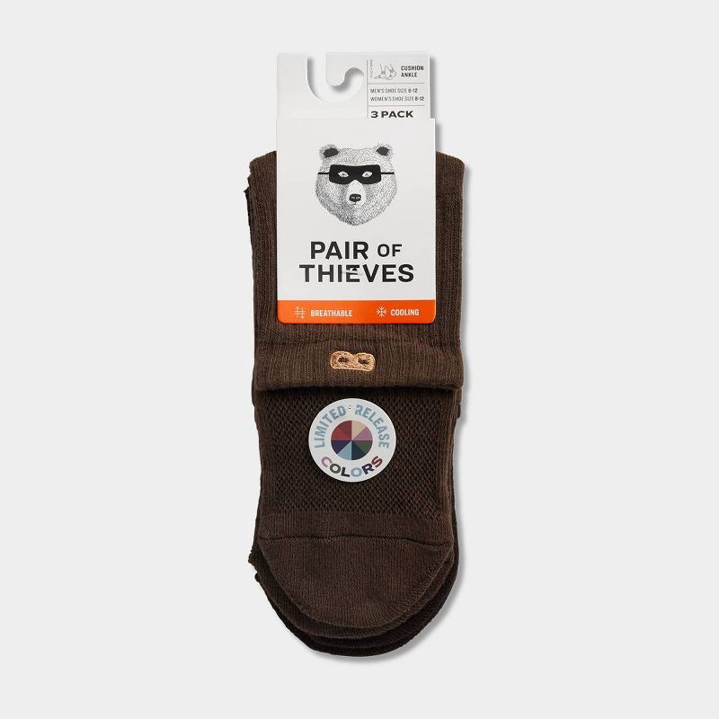 slide 1 of 5, Pair of Thieves Men's Ankle Socks 3pk - Dark Brown 6-12, 3 ct