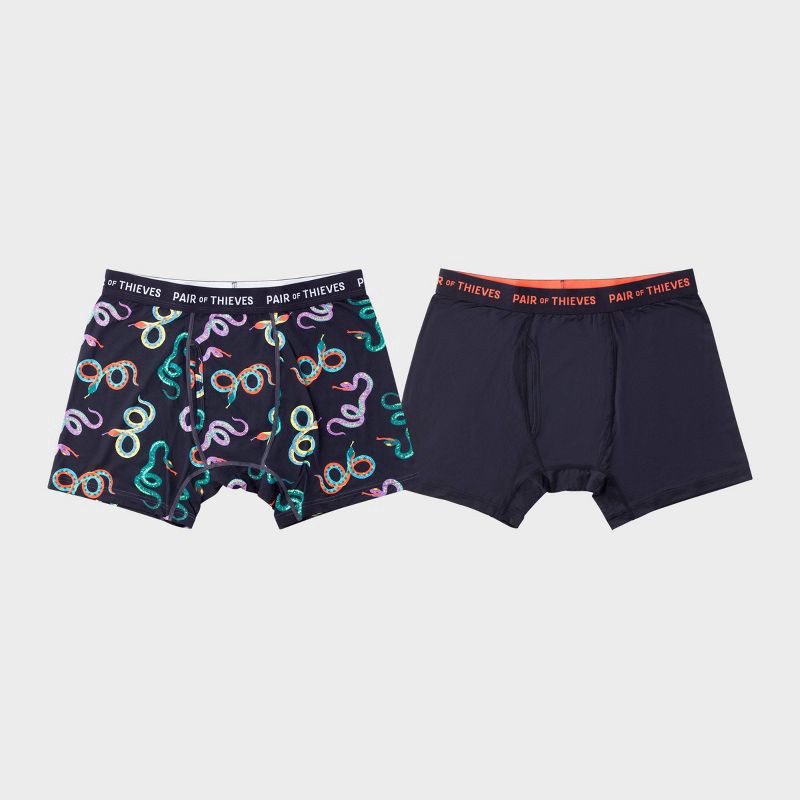 slide 9 of 9, Pair of Thieves Men's Snake Print Super Fit Boxer Briefs 2pk - Navy Blue/Black XL: Mid Rise, Mesh, Full Waistband Elastic, 2 ct