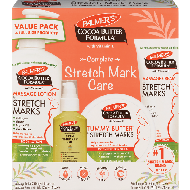 Pregnancy Must-Haves: Help improve the appearance of scars and stretch marks during and after your pregnancy with this maternity skincare kit featuring a collection of pregnancy essentials from Palmer…