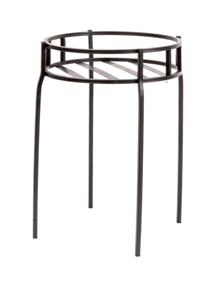 Contemporary round steel plant stand. An attractive and sturdy addition to your patio or garden. Can be used indoors too when the outdoor growing season ends.
