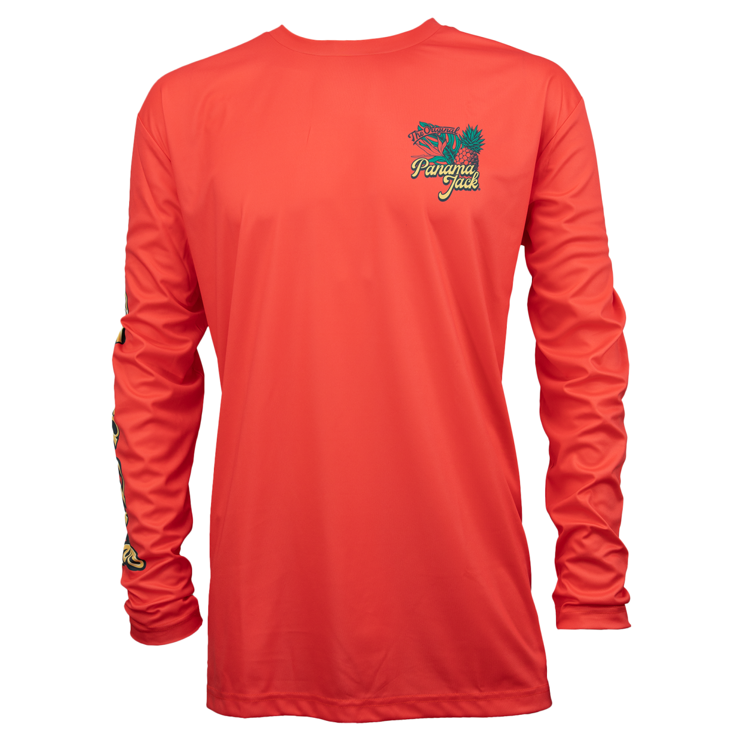 Panama Jack Long Sleeve Performance Shirt with UPF 35+ Sun Protection in Red